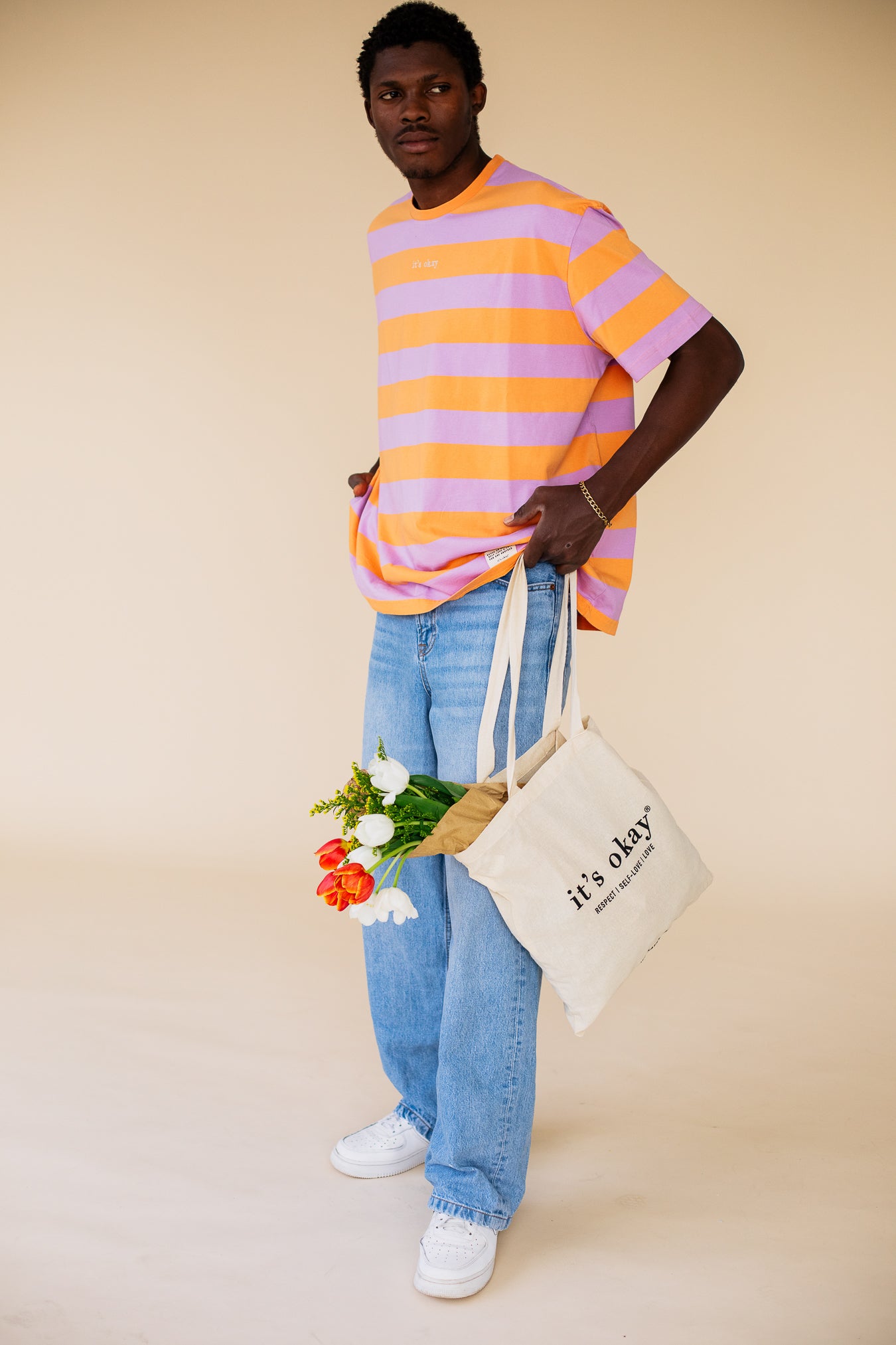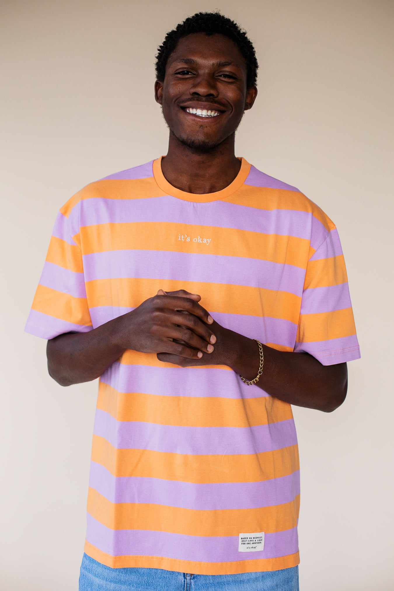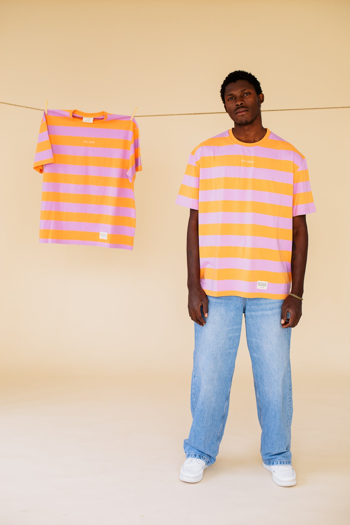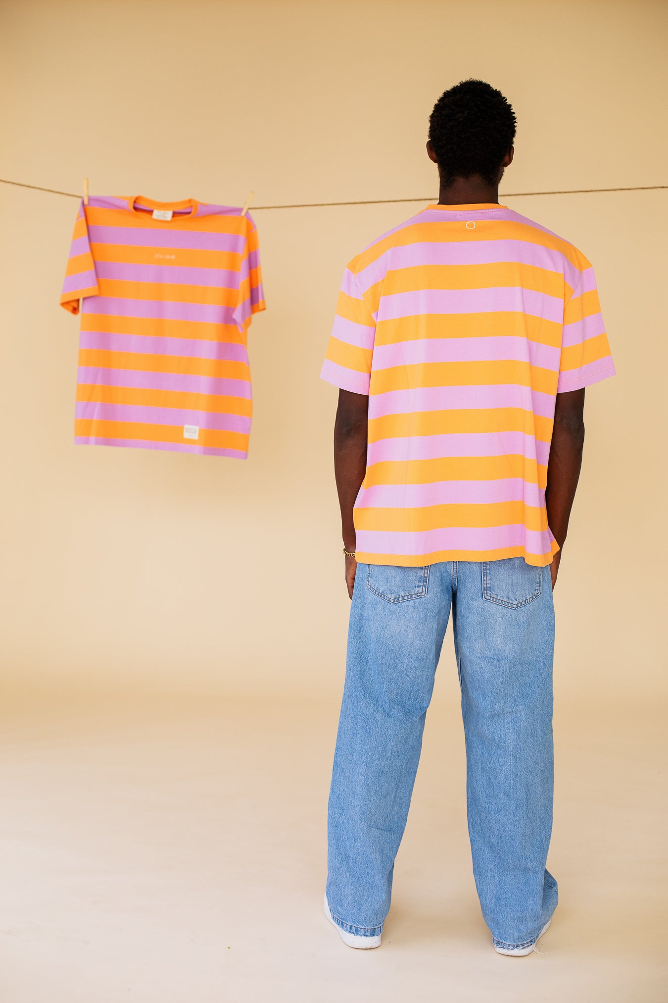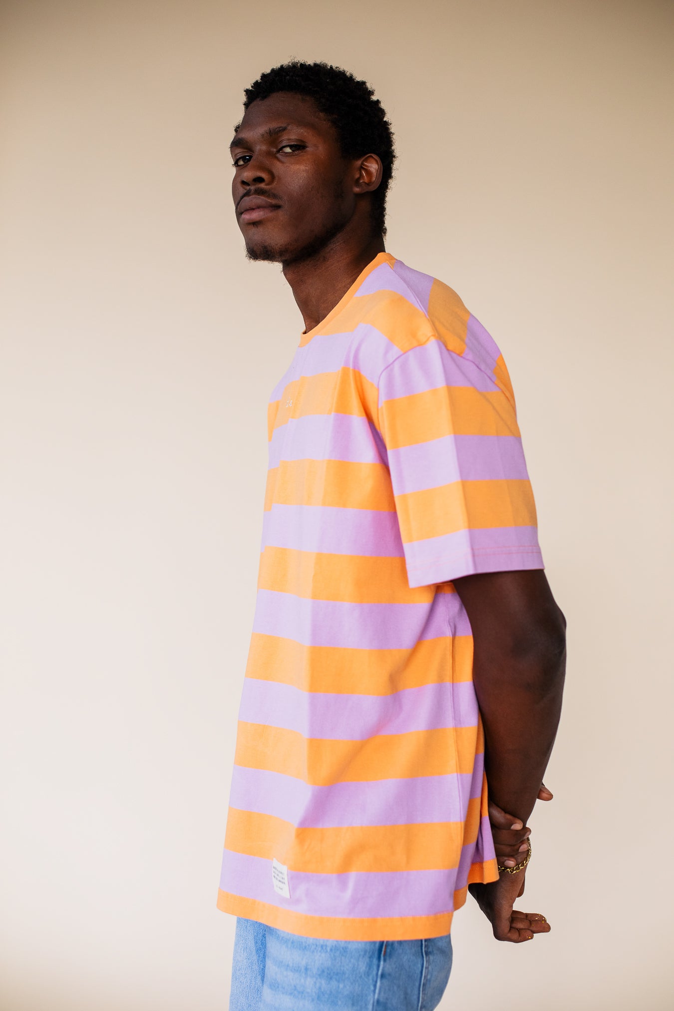 ORGANIC STRIPED T-SHIRT - ORANGE/LILAC